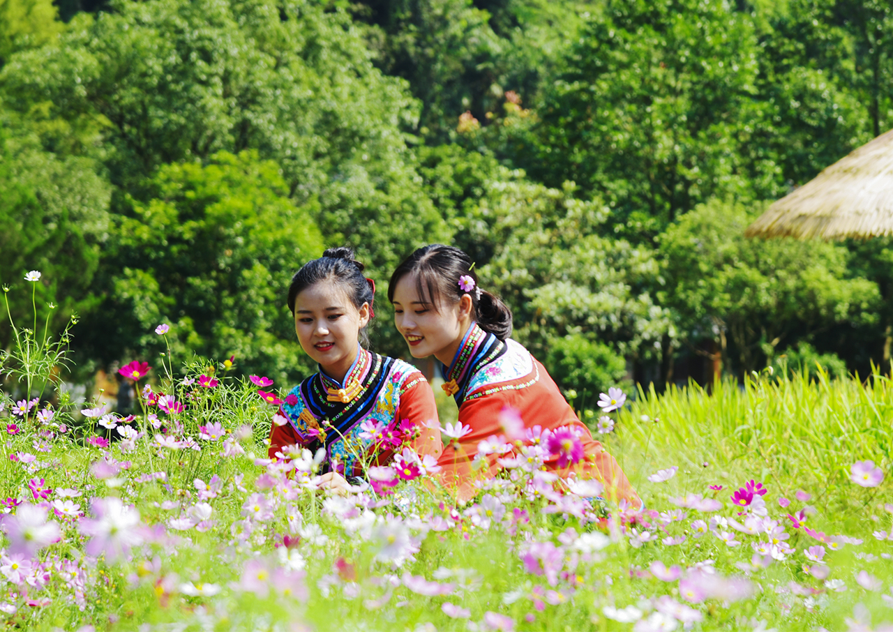 9月7日,白露節(jié)氣,張家界市武陵源區(qū)黃龍洞景區(qū)生態(tài)廣場(chǎng),百日菊、格?;?zhēng)相綻放